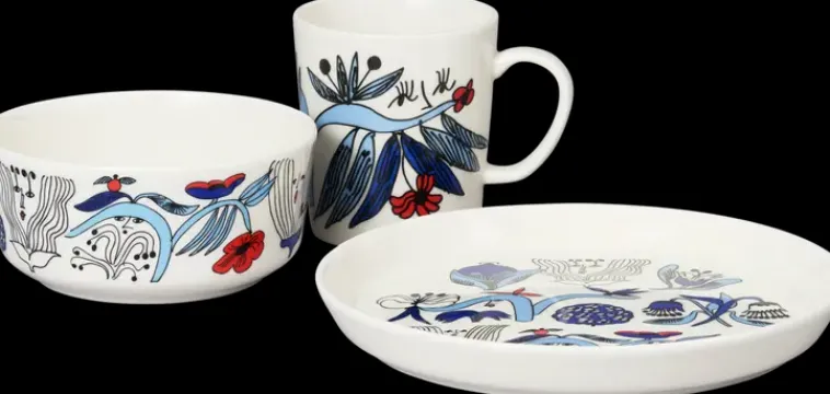 Taiteilija Armi Tevan Luoma Puutarhurit-Kuvio On Raikas Sinisävyinen Puutarha, Jossa Kasvien Lomasta Kurkistelevat Leikkimieliset Hahmot. Puutarhurit 19Cm Lautanen Sopii Kooltaan Niin Aamiaiselle Kuin Alku- Ja Välipaloille. Yhdistele Puutarhurit-Koristetta Muiden Arabian Rakastettujen Kuvioiden Kanssa.