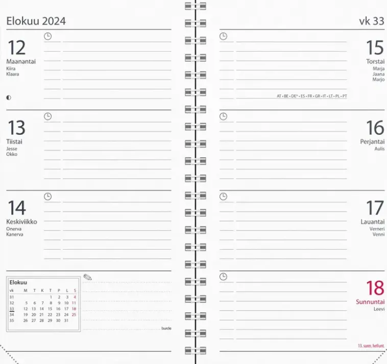 Kalenterin Aukeamalla Yksi Viikko Ja Kuluvan Kuukauden Kalenteritaulukko. Kalenteri Sisältää Nimipäivät, Kansalliset Pyhäpäivät, Liputuspäivät, Kuun Vaiheet, Vuosisuunnitelmat Kuluvalle Ja Seuraavalle Vuodelle, Yleiset Pyhäpäivät Euroopassa, Kalendaariset Tiedot, Suomen Kartta, Välimatkataulukon Ja Erillisen Puhelinmuistion. Kalenteriosa: Vk 51 2023-Vk 1 2025. Suomenkielinen. Parikierresidottu. Fsc®. Koko: 83X158 Mm.