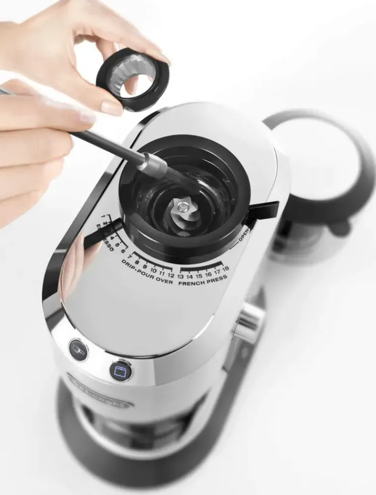 Delonghi Kg520.M Dedica Kahvimylly. Ammattimainen, Tarkka Ja Teräksinen Kahvimylly Jauhaa Pavut Alhaisella Lämpötilalla Säilyttäen Kahvipapujen Tuoreen Aromin Ja Saat Täydellisen Kahvinautinnon Kuppi Toisensa Jälkeen. Dedica Kahvimylly Tarjoaa Sinulle Jopa 18 Eri Jauhatuskarkeutta. Olitpa Sitten Espresson, Suodatinkahvin Tai Pressokahvin Ystävä, Löydät Karkeusasetuksista Varmasti Oman Suosikkisi.Kaksi Tapaa Jauhaa! Voit Jauhaa Isomman Määrän Papuja Kahvijauheelle Tarkoitettuun Säilytysastiaan Tai 1-2 Kuppia Kerrallaan Suoraan Kahvakeittimen Suodatinpidikkeeseen.Irrotettavan Ja Helposti Puhdistettavan Papusäiliön Tilavuus On 350G.
