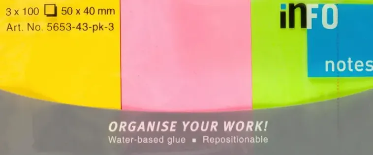 Be the first to review “Ei merkkiä Toimistotarvikkeet>Info Notes Viestilappu 40X50Mm 3X100 Kpl Neon” Peruuta vastaus