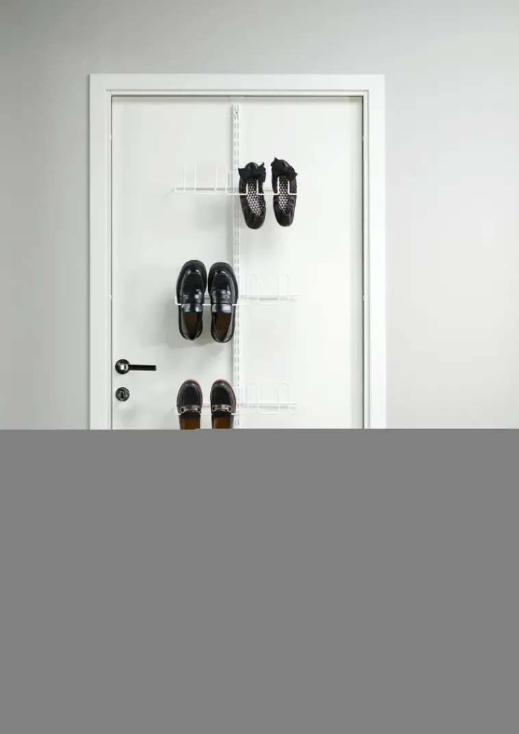 Upea, Grap And Go -Säilytyssetti Kengille. Setti Sisältää Kaiken Mitä Tarvitset Täydellisen Kenkien Säilytysratkaisun Luomiseen Oveen. Settiin Saa Säilytykseen Yhteensä Kahdeksan Kenkäparia. Sarja Sisältää Kenkätelineet (4 Kpl), Seinäkiskot K:99 (2 Kpl), Liitinhelan Sekä Ovikoukun.