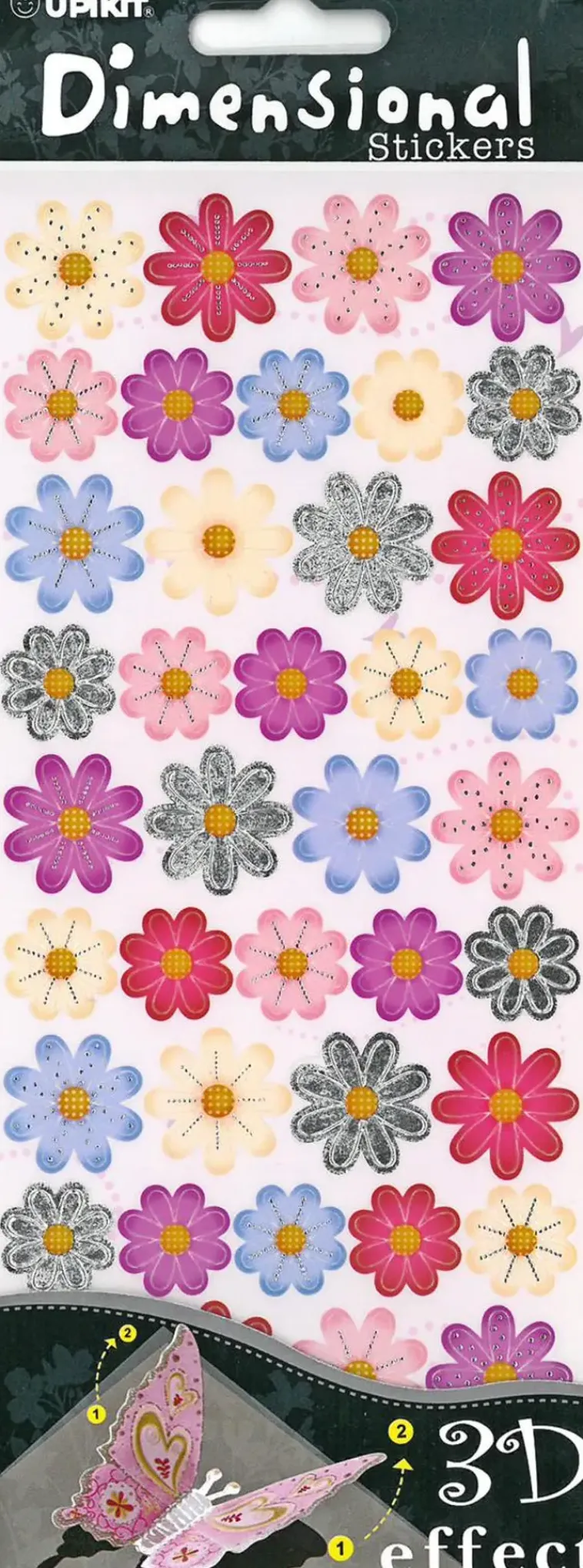 J.K. Primeco Askartelutarvikkeet>3D Tarra-Arkki Varilliset Kukat