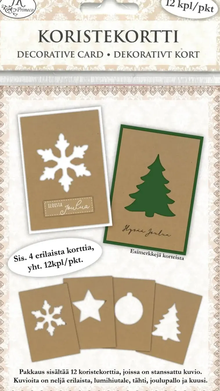 J.K. Primeco Askartelutarvikkeet<Koristekortti Joulukuviot Uusioruskea 12 Kpl