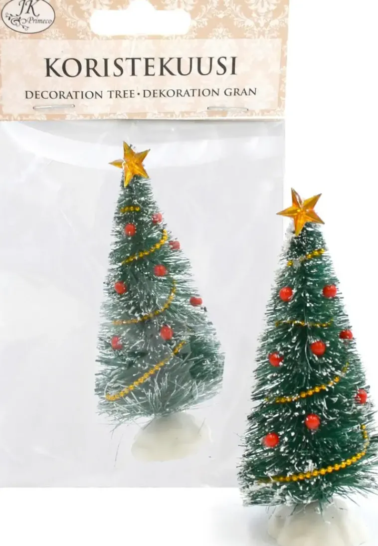 Koristekuusi Koristeluun Ja Minimaailman Rakentamiseen. Pakkaus Sisältää Yhden Muovisen Koristellun Kuusen, Jonka Korkeus On N. 10Cm.