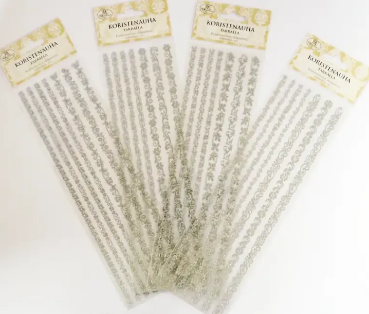 Pakkauksessa Yksi Arkki Tarranauhoja, Neljä Erilaista Kuosia. Voi Käyttää Mm. Korttiaskarteluun, Skräppäilyyn Ja Koristeluun.