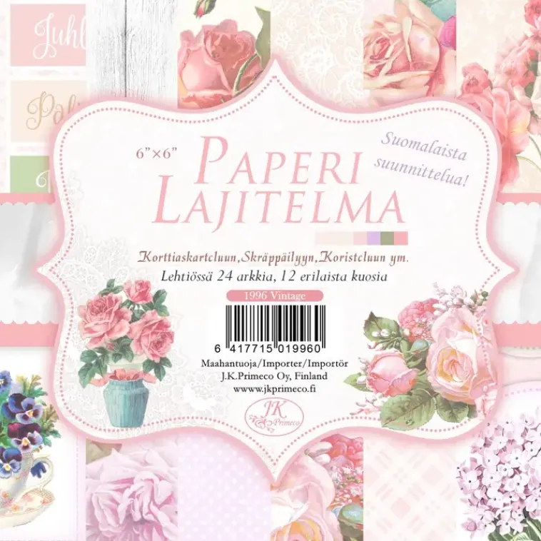J.K. Primeco Askartelutarvikkeet<Skrappayslehtio Vintage 6"X6" 24Arkkia