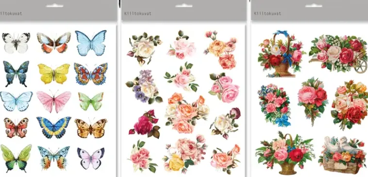 Lajtelmassa Erilaisia Kiiltokuvia. Pakkauksessa On 2 Kpl Samanlaista Arkkia.