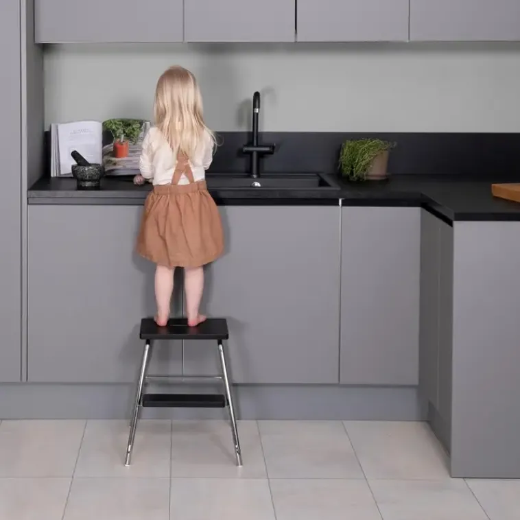 Lanka ja Muovi Eteiskalusteet<Porrasjakkara Lm 185, Kromi/Musta