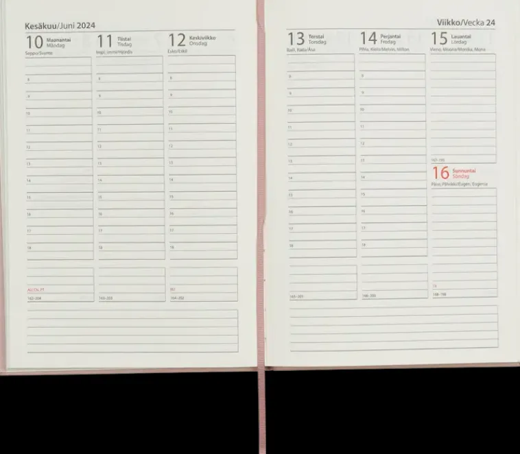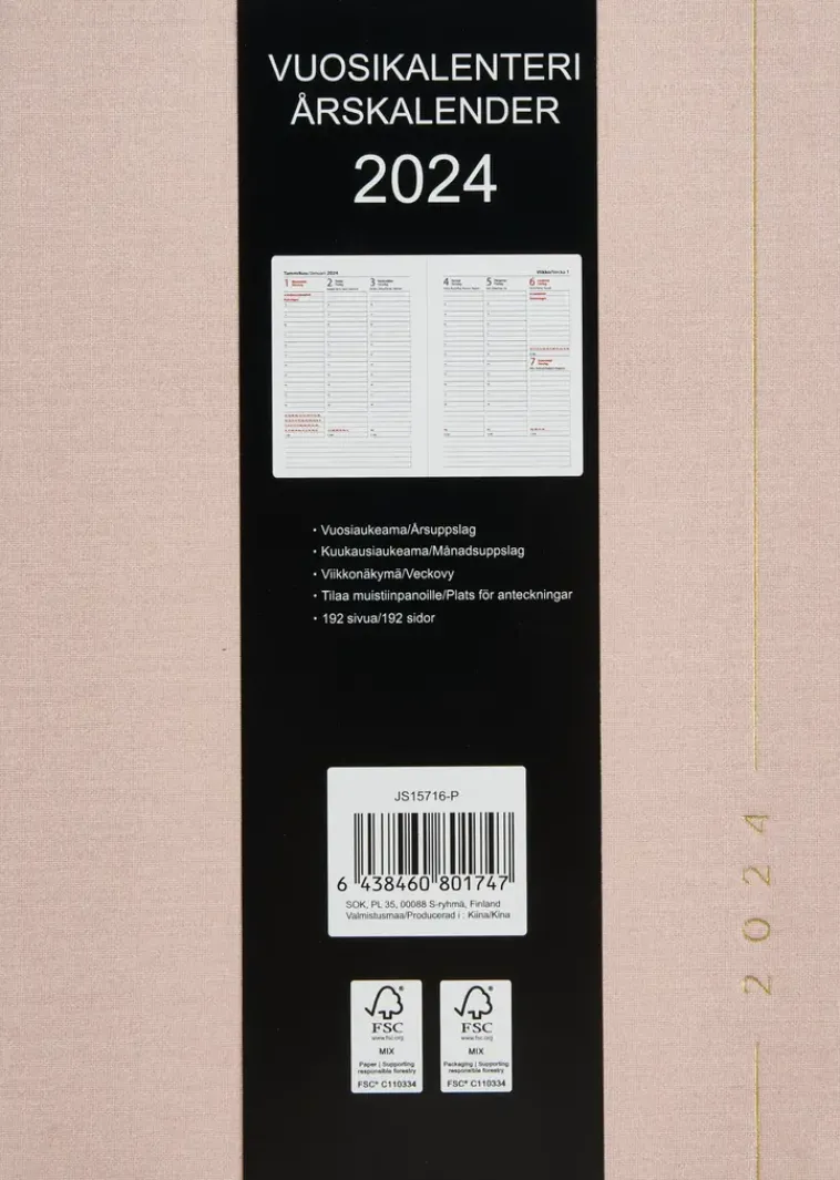 Vuosikalenteri Kangaskansilla Ja Kirjanmerkkinauhalla. Koko: A5. Kielisyys: Suomi, Ruotsi. 192 Sivua.