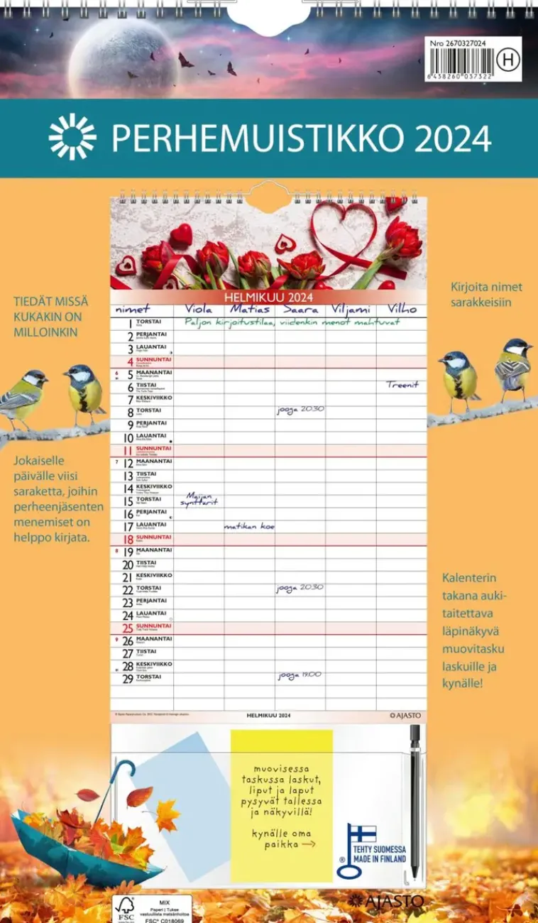 Ajasto Kalenterit>Seinakalenteri Perhemuistikko
