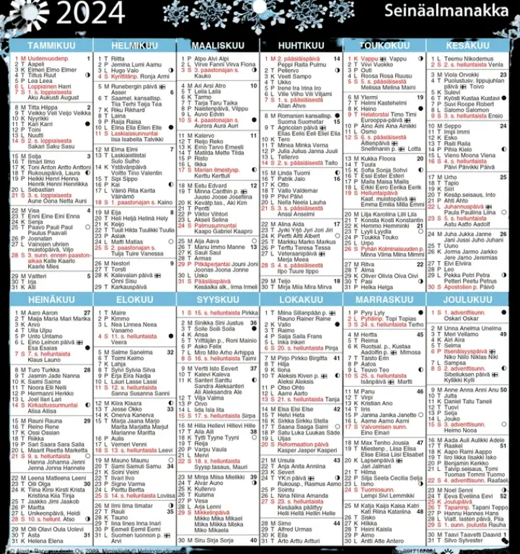 Ajasto Kalenterit>Seinakalenteri Seinaalmanakka/Vaggalmanackan