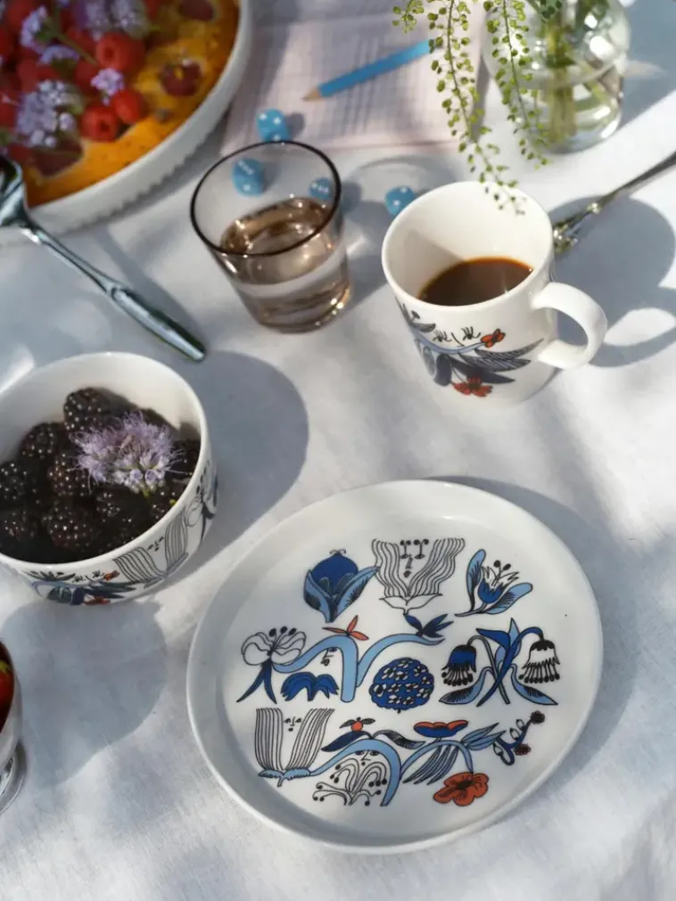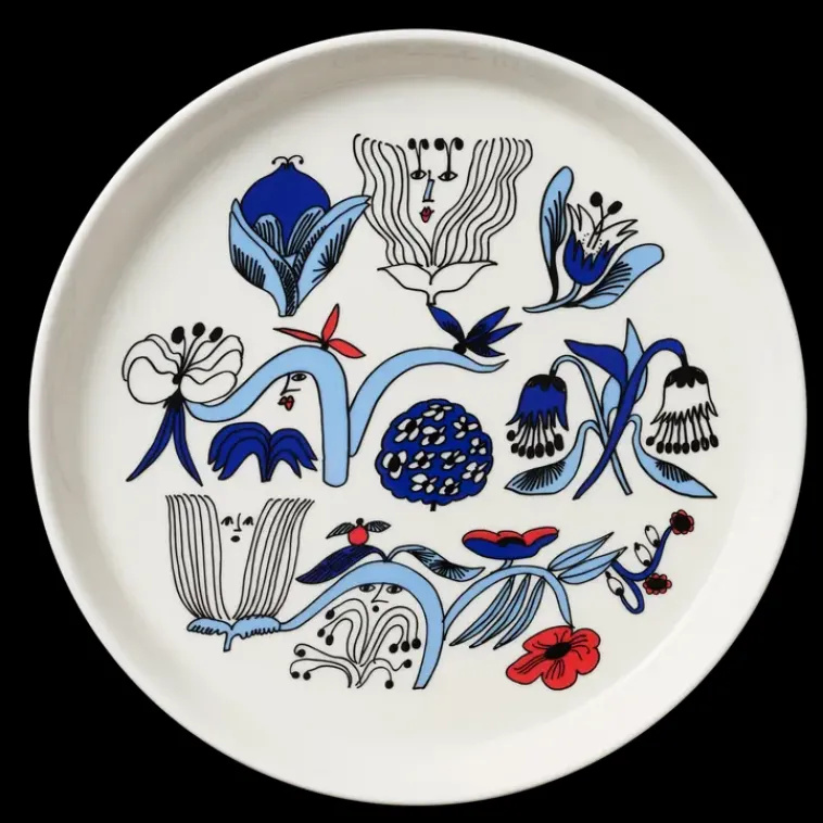 Taiteilija Armi Tevan Luoma Puutarhurit-Kuvio On Raikas Sinisävyinen Puutarha, Jossa Kasvien Lomasta Kurkistelevat Leikkimieliset Hahmot. Puutarhurit 19Cm Lautanen Sopii Kooltaan Niin Aamiaiselle Kuin Alku- Ja Välipaloille. Yhdistele Puutarhurit-Koristetta Muiden Arabian Rakastettujen Kuvioiden Kanssa.