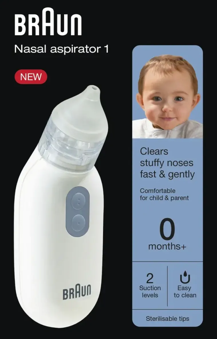 Helposti Puhdistettava Ja Paristokäyttöinen Braun-Nenäimuri Puhdistaa Tukkoisen Nenän Nopeasti Ja Turvallisesti. Laitteessa On Kaksi Imutasoa Ja Kaksi Erikokoista Nenäosaa. Kaksi Aa Kokoista Paristoa Mukana Pakkauksessa.