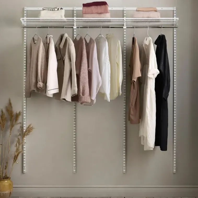 Elfa Säilytyskalusteet<Erityisesti Vaatesailytykseen Soveltuva Aloituspakkaus Sisaltaa Kantokiskon, Riippukiskot, Lankahyllyn Ja Vaatetangon. Helppo Laajentaa Myohemmin Yhdistamalla Muita n Sailytystuotteita.