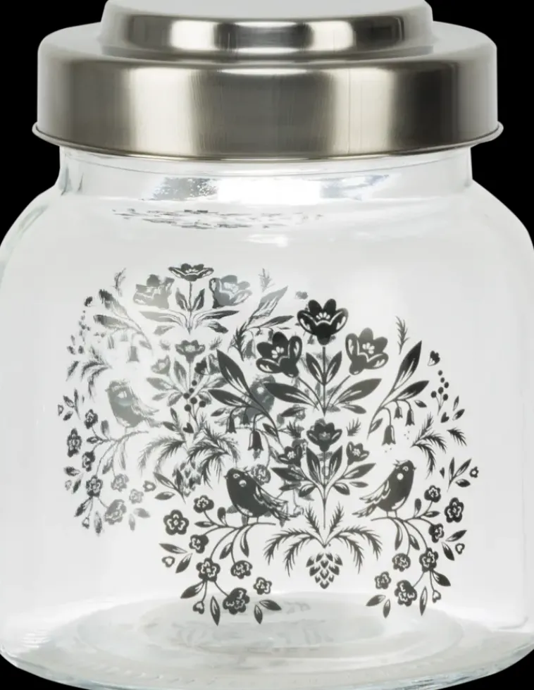 Lasista Valmistettu Säilytyspurkki, Jossa On Kaunis Kuviointi. Tilavuus 0,6 L, Korkeus 12,7 Cm Ja Halkaisija 10,5 Cm. Käsinpesu.House-Mallistossa Saatavilla Yhteensopiva Kaadin, House Kaadin Sointu 1 L.