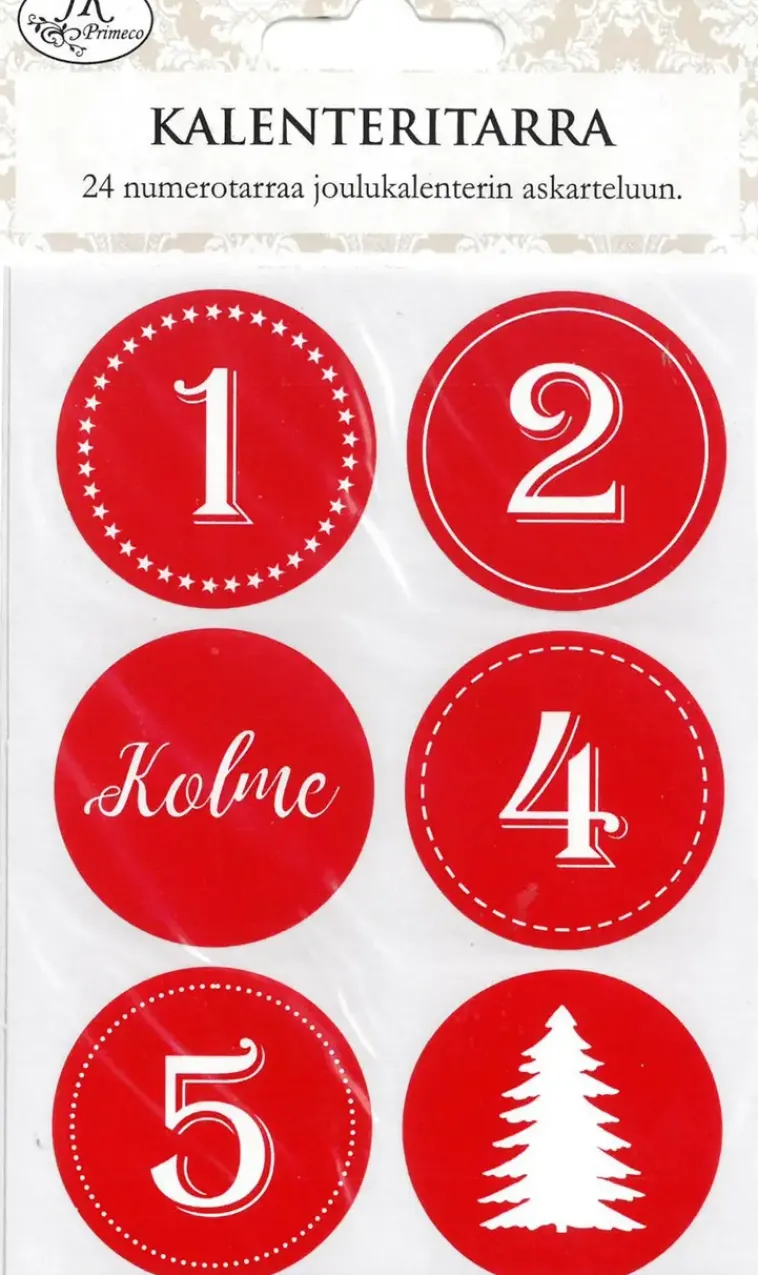 J.K. Primeco Askartelutarvikkeet>Joulukalenteritarra Punavalko 4Ark/Pkt