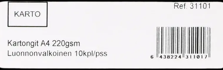 Karto Askartelutarvikkeet<Askartelunki A4 220 Gsm Luonnon Valkoinen 10 Ark/Pss
