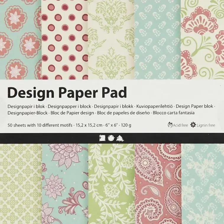 Nellen Askartelutarvikkeet>Kuviopaperilehtio, Arkki 15,2X15,2 Cm, 120 G, Mintunvihrea, Lila, 50Ark