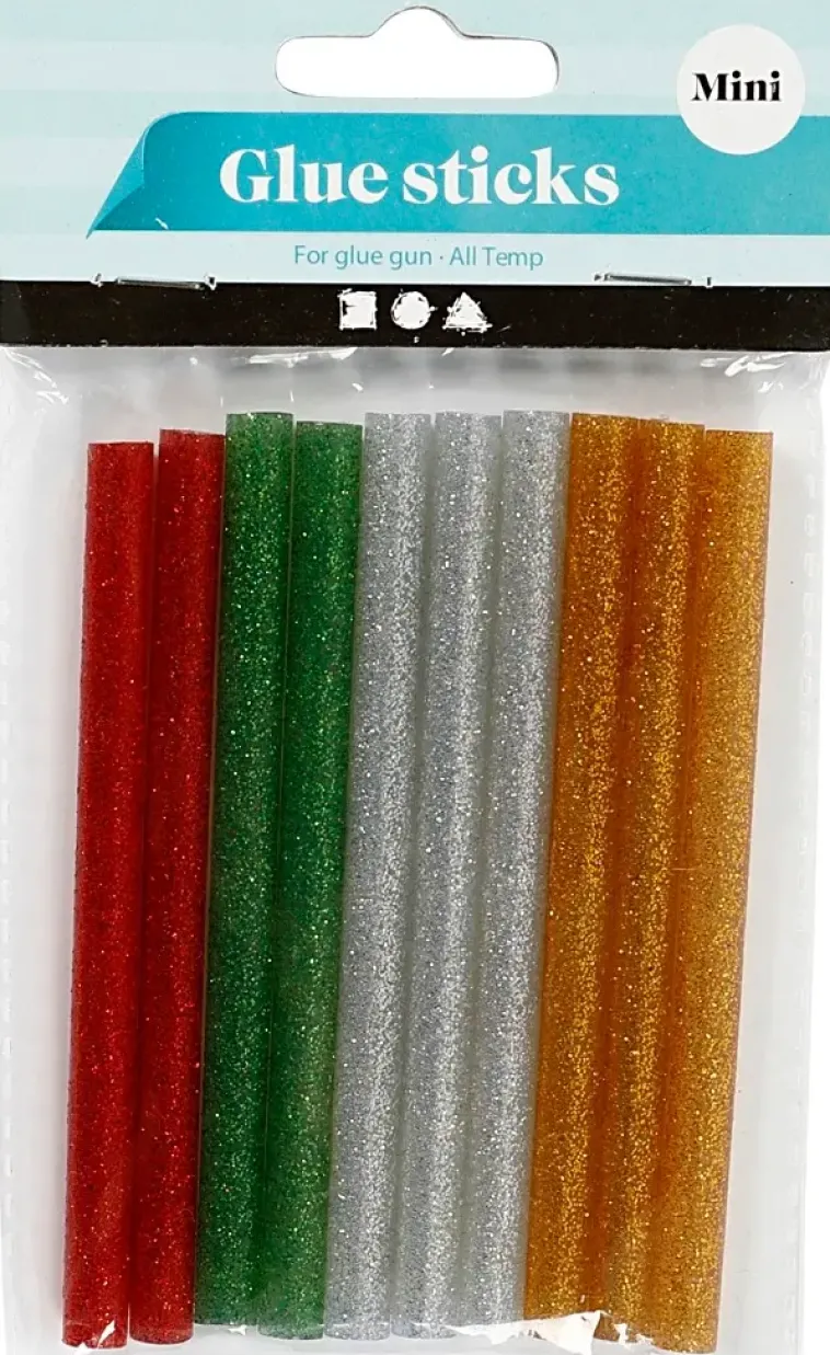 Nellen Askartelutarvikkeet>Liimapatruunat, Halk. 7 Mm, Pit. 10 Cm, Vihrea, Kulta, Hopea, Punainen, 10Kpl