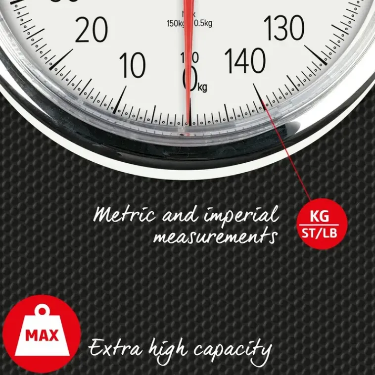 Salterin Mekaaninen Tohtorin Vaaka On Klassikkojen Klassikko. Musta Kuminen Ja Leveä Pinta Takaavat Tukevan Alustan, Jolle Astua. Suuresta Näytöstä On Helppo Lukea Mittaustulokset Aina 150 Kg Saakka 500 Gramman Tarkkuudella. Vaaka Toimii Ilman Paristoja Tai Lataamista. Salter Myöntää Tuotteelle 15 Vuoden Takuun.