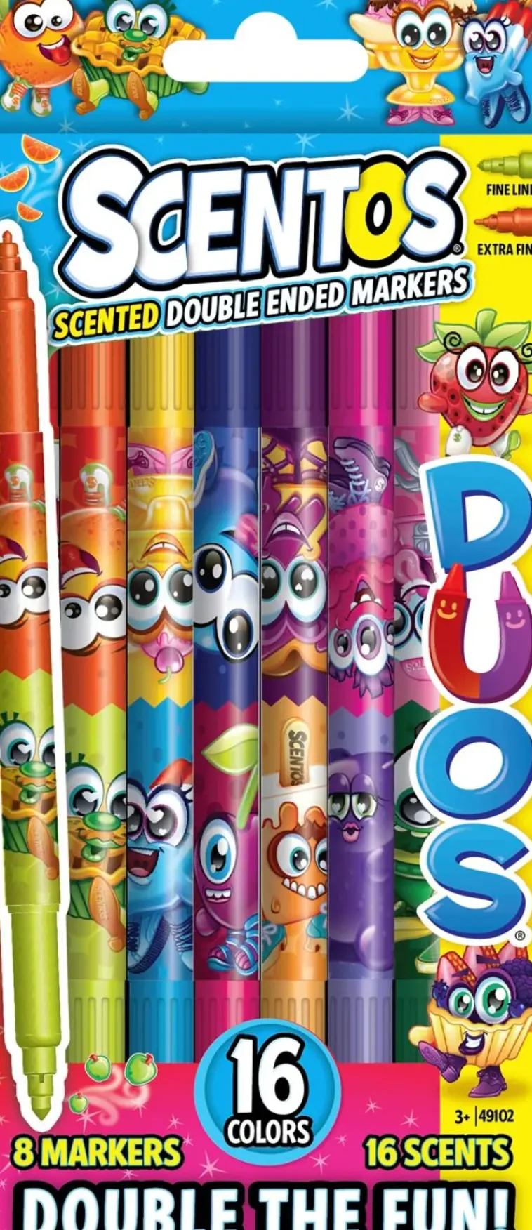 Scentos Tuoksuvat Kaksipäiset Ohut Kärkiset Tussit 8Kpl.