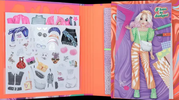 Kansion Välistä Löydät Suuren Määrän Suunnittelusivuja, Tarroja, Sapluunoita Ja Kuvioarkkeja. Jokaisen Topmodel-Fanin &Quot;Pakko Saada&Quot;-Tuote!