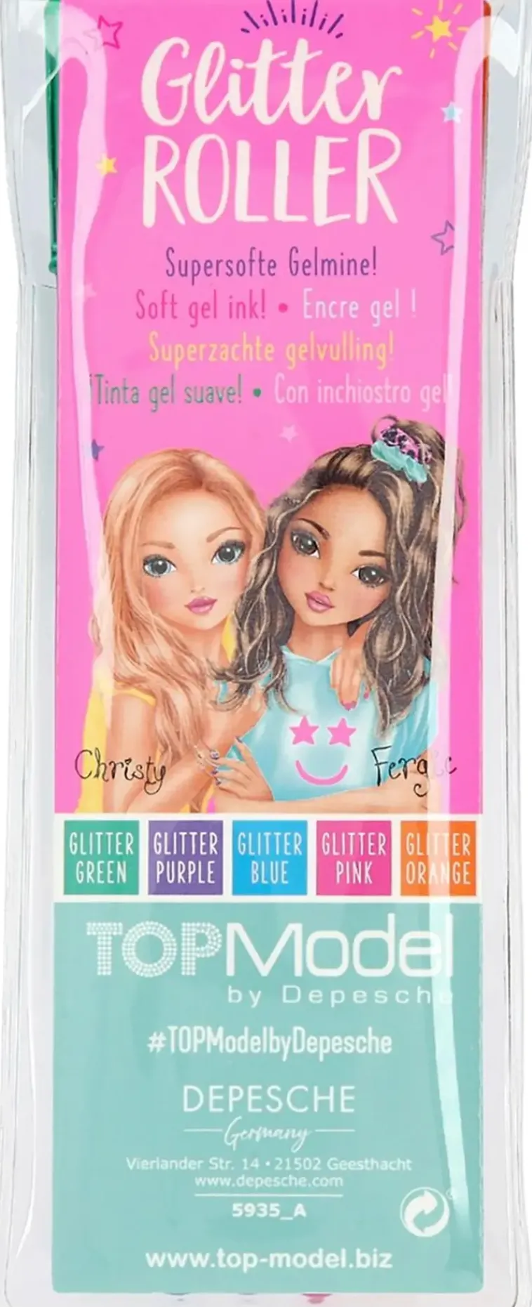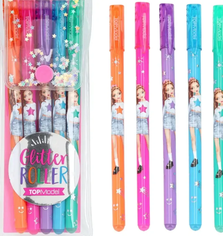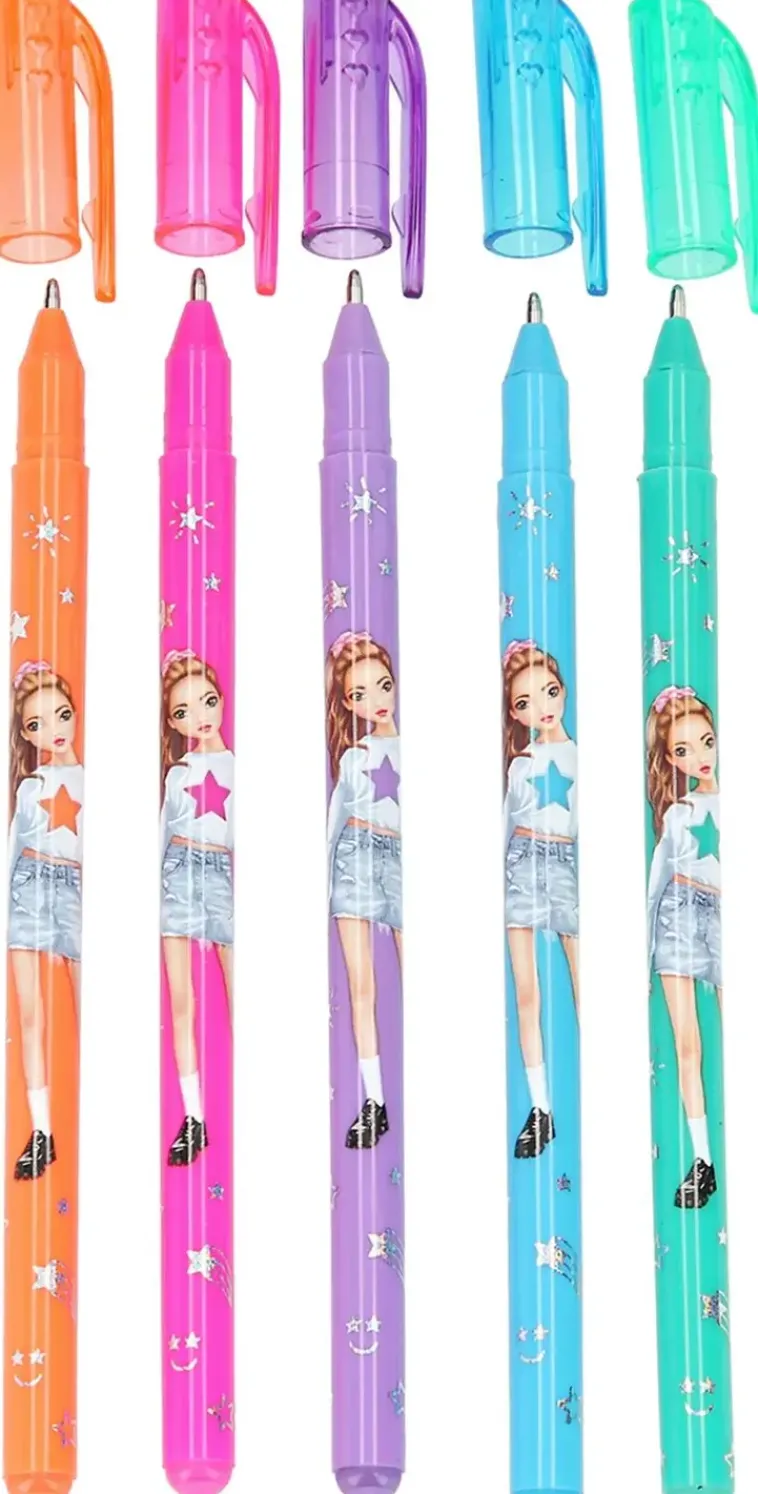 Topmodel Kimallekynät Koostuvat Oranssista, Pinkistä, Lilasta, Sinisestä Ja Vihreästä Kynästä, Joilla Saat Kimaltavat Korostukset Värityspuuhiin!